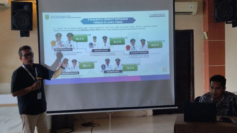 "Tingkat kepuasan Wali Kota dan Wakil Wali Kota Madiun mencapai 84,3%, tertinggi di Jawa Timur. Angka ini tidak hanya mencerminkan keberhasilan program-program prioritas, tetapi juga menunjukkan tingginya kepercayaan masyarakat terhadap kepemimpinan Maidi - Bagus Panuntun," ujar Dr. Sufyanto dalam press release hasil survei 100 hari kinerja Wali Kota dan Wakil Wali Kota Madiun di I Club Madiun, Selasa (27/5/2025).
