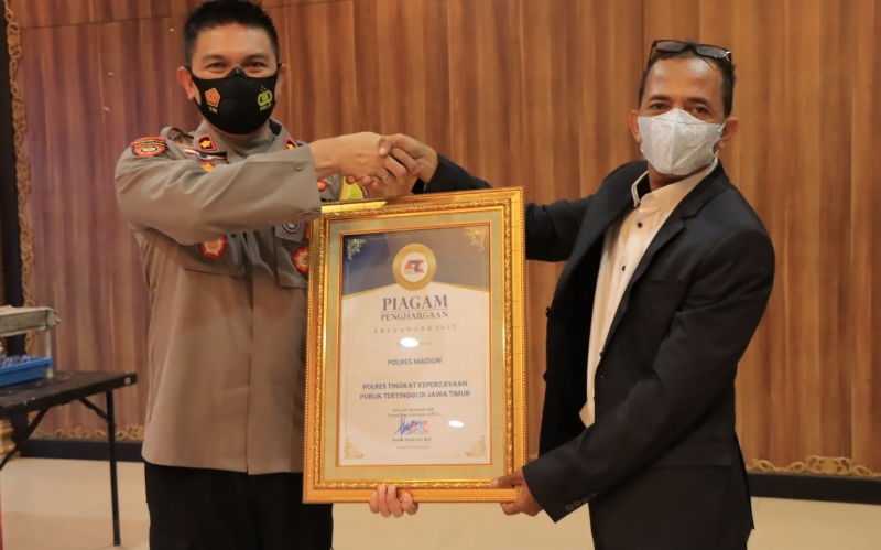 Penghargaan tersebut diserahkan langsung Direktur ARCI, Prof. Baikhaki Siradj kepada Waka Polres Madiun, Kompol Ricky Tri Dharma.