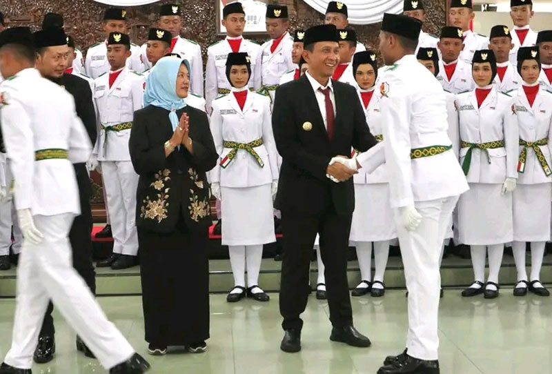 JATIMPOS.CO/BOJONEGORO - Sebanyak 72 anggota Pasukan Pengibar Bendera Pusaka (Paskibraka) Kabupaten Bojonegoro tahun 2025 resmi dikukuhkan oleh Bupati Bojonegoro Setyo Wahono, Rabu (14/8/2025). Prosesi pengukuhan di Pendopo Malowopati ini menandai kesiapan para putra-putri terbaik daerah untuk mengemban tugas sakral mengibarkan Sang Saka Merah Putih pada upacara peringatan Hari Ulang Tahun (HUT) ke-80 Kemerdekaan Republik Indonesia.
