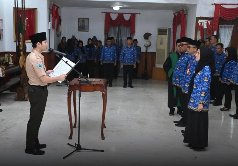 JATIMPOS.CO/TRENGGALEK - Bupati Trenggalek, Mochamad Nur Arifin mengambil sumpah dan pelantikan 3 pejabat tinggi pratama di awal Oktober 2025. Dua pejabat mengalami promosi jabatan, sedangkan satu pejabat mendapatkan mutasi jabatan.