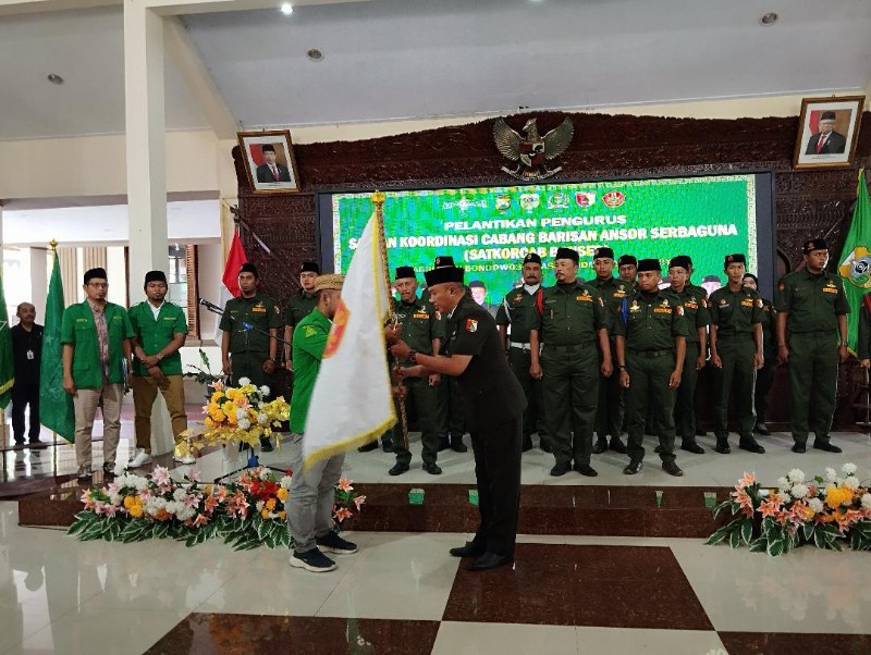 JATIMPOS.CO/BONDOWOSO - Pengurus Satuan Koordinasi Cabang (Satkorcab) Barisan Ansor Serbaguna (Banser) Kabupaten Bondowoso masa khidmat 2022-2027 resmi dilantik, pada Sabtu (11/11/2023).