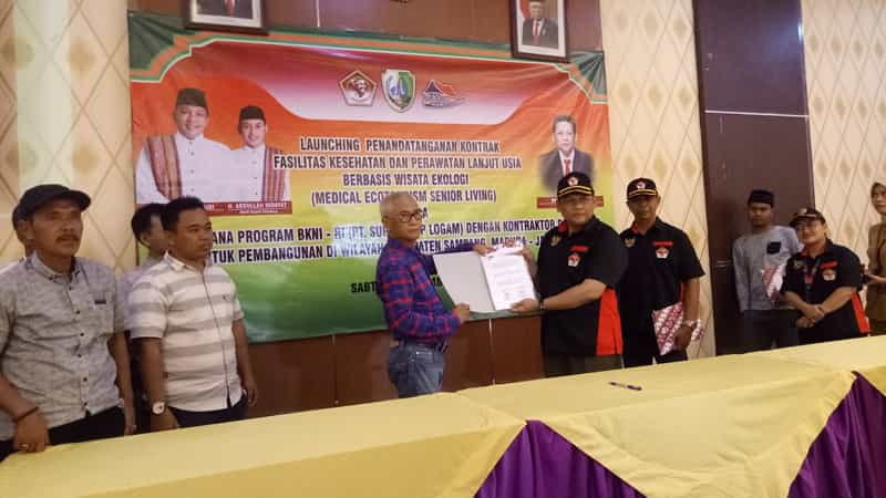 JATIMPOS.CO/SAMPANG - Badan Ketahanan Nasional Republik Indonesia (BKNI-RI) melaunching penandatanganan kontrak fasilitas kesehatan dan perawatan lanjut usia berbasis wisata ekologi (Medical Ecotourism Senior Living) dengan 3 Kontraktor di Kabupaten Sampang, Sabtu (14/12/2019).