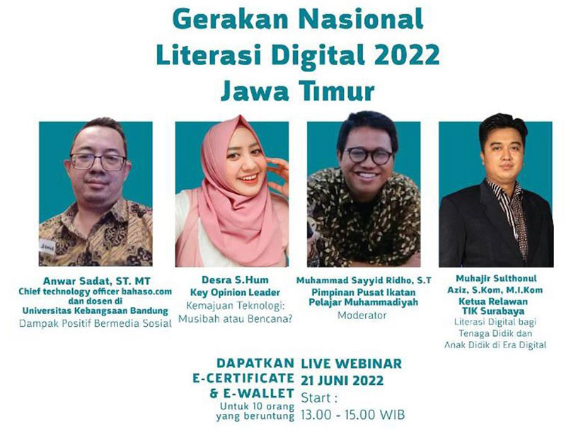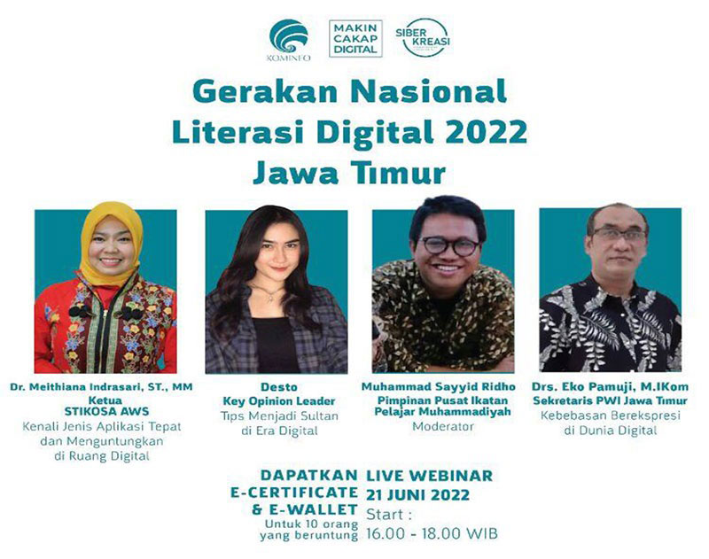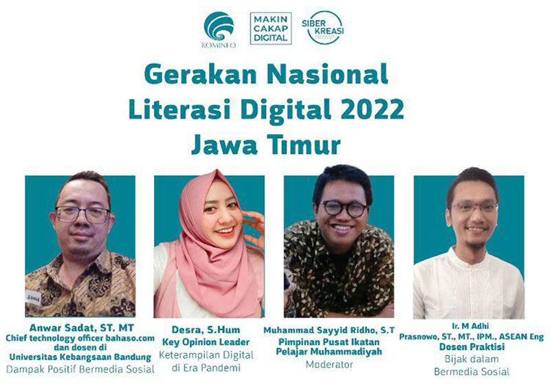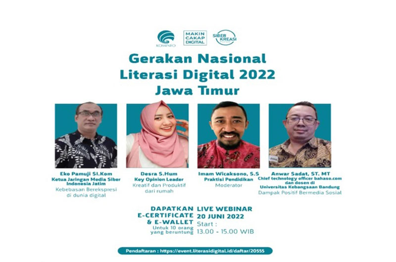 JATIMPOS.CO//SURABAYA- Kemkominfo siber kreasi Kembali menghadirkan Program Makin Cakap Digital di Tahun 2022, Siapa sih di jaman sekarang yang tidak memakai social modia dan internet? Yang pasti tidak mau ketinggalan jaman kan, buat kalian bisa ikutan webinar literasi digital.