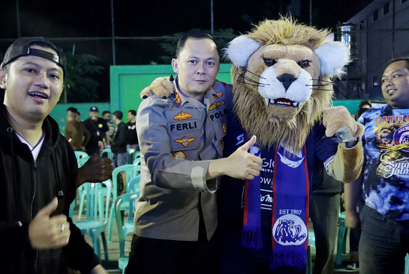 JATIMPOS.CO/KABUPATEN MALANG - Kapolres Malang AKBP Ferli Hidayat gelar Nobar (nonton bareng) Aremania pada pertandingan BRI Liga 1 antara Persik Kediri melawan Arema FC yang bertempat di Lapangan Tenis Indoor Mapolres Malang, Kecamatan Kepanjen, Kabupaten Malang. Sabtu (17/9/22).