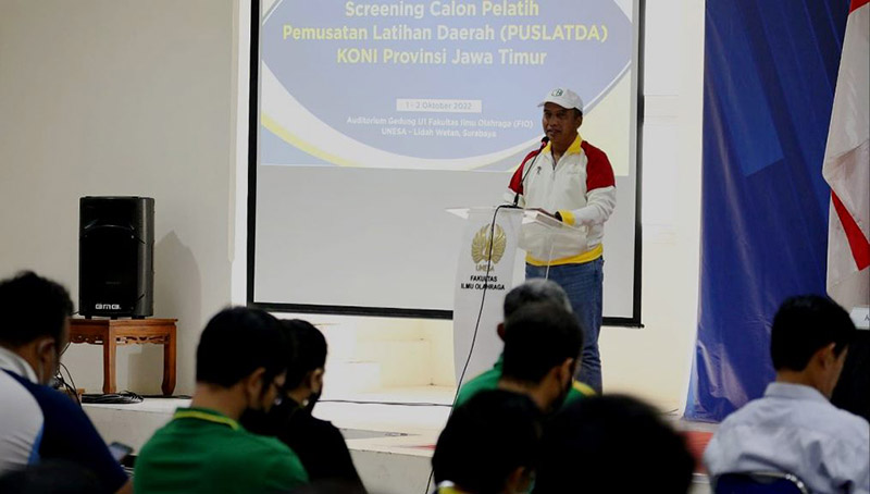 JATIMPOS.CO/SURABAYA – Meski penyelenggaraan PON XXI di Aceh, Sumatera Utara tahun 2024 masih lama, namun Komite Olahraga Nasional Indonesia (KONI) Jawa Timur sudah mulai melakukan seleksi calon pelatih Puslatda Jatim.