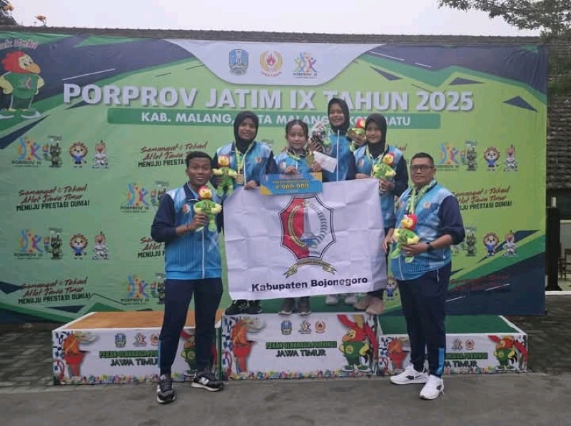JATIMPOS.CO / BOJONEGORO – Kontingen Kabupaten Bojonegoro menutup ajang Pekan Olahraga Provinsi (Porprov) Jawa Timur 2025 dengan prestasi membanggakan. Bojonegoro meraih total 67 medali yang terdiri dari 18 emas, 20 perak, dan 29 perunggu, menempatkannya di peringkat ke-18 klasemen akhir—melampaui target yang ditetapkan sebelumnya.
