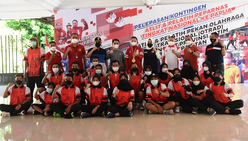 JATIMPOS.CO/KABUPATEN MOJOKERTO - Bupati Mojokerto dr. Ikfina Fahmawati, melepas pemberangkatan atlet dan pelatih yang akan mengikuti Pekan Paralimpik Nasional (Peparnas) XVI di Papua, serta pemberangkatan atlet Pekan Olahraga Tradisional (Potradnas) di Kabupaten Pacitan.