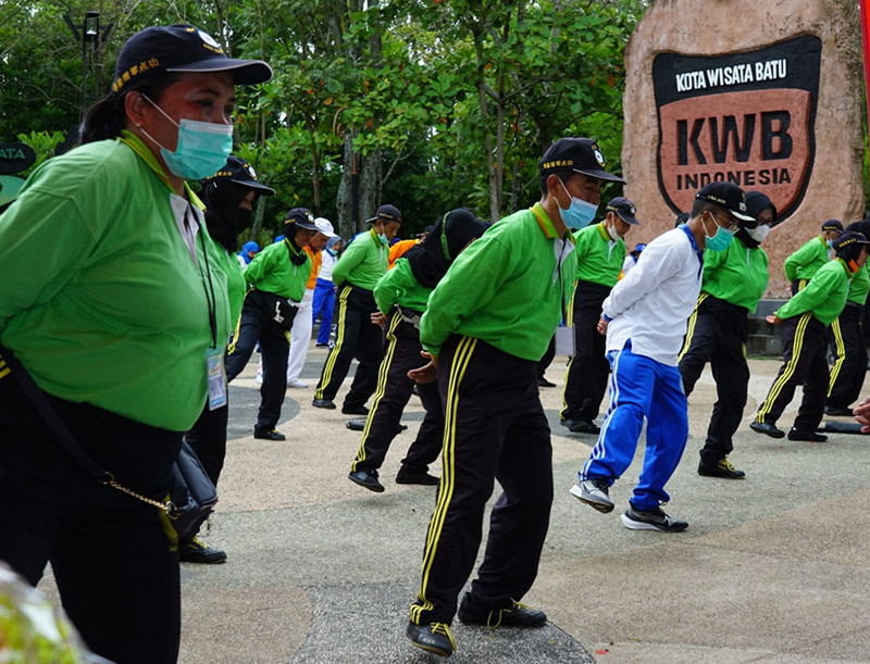 JATIMPOS.CO/BATU - Wakil Wali Kota Batu Ir H Punjul Santoso, menghadiri kegiatan senam bersama Lien Tien Kung, di Hutan Kota Bondas, Kota Batu, Sabtu (30/10).