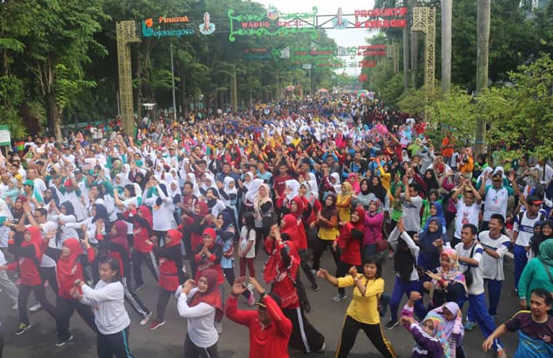 Meriah, Ribuan Masyarakat Bojonegoro Senam Cuci Tangan Bersama