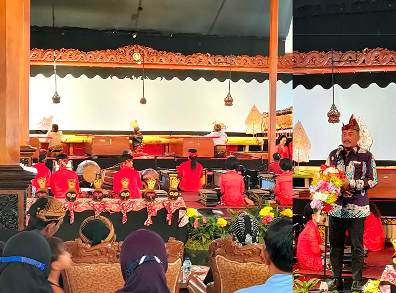 Kolaborasi Dalang Bocah Jatim Berprestasi (kiri) dan Ka UPT Taman Budaya Jatim, Samad Widodo, S.S, MM (kanan) pada pembukaan kegiatan
