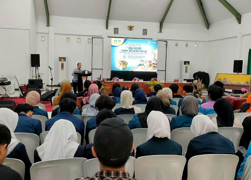 Ka UPT Museum Mpu Tantular Sadari, S.Sn menyampaikan sambutan didepan peserta seminar.