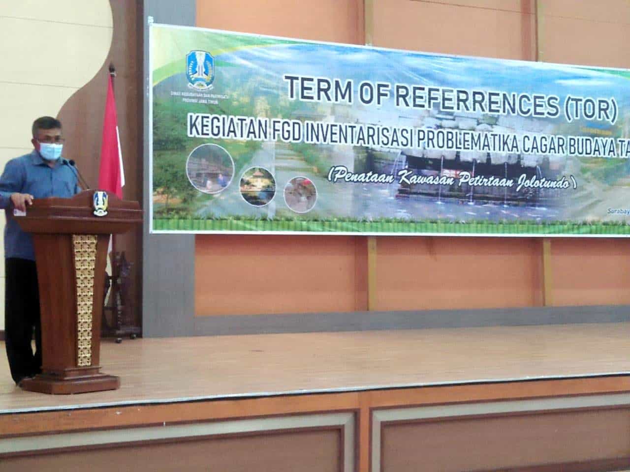 Karena itu, Disbudpar Jatim melalui Bidang Cagar Budaya dan Sejarah (CBS) menyelenggarakan FGD Inventarisasi Problematika dalam Pelestarian Cagar Budaya (Penataan Kawasan Petirtaan Jolotundo) di Graha Wisata, Disbudpar Jatim, Kamis (12/11/2020).
