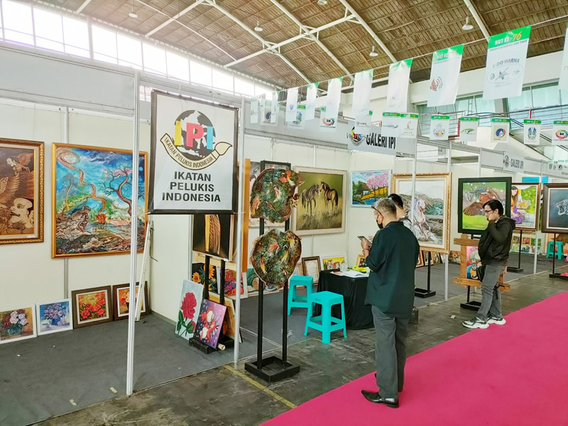 Salahsatu stand di Pasar Seni Lukis Indonesia 2021 di Jatim Expo Surabaya.
