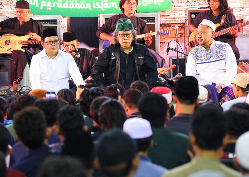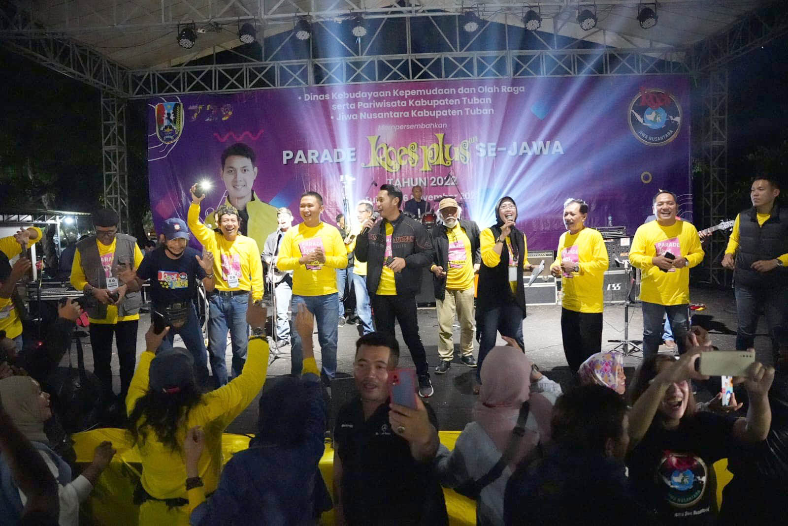 JATIMPOS.CO/TUBAN - Bupati Tuban, Aditya Halindra Faridzky bersama Forkopimda Tuban tampak hanyut bersenandung pada Parade Koes Plus-an Se-Jawa tahun 2022 di objek wisata pantai Boom Tuban, Sabtu (26/11/2022) malam. Sebanyak 20 grup musik pelestari lagu-lagu Koes plus memeriahkan kegiatan musik yang diselenggarakan sejak siang hari.