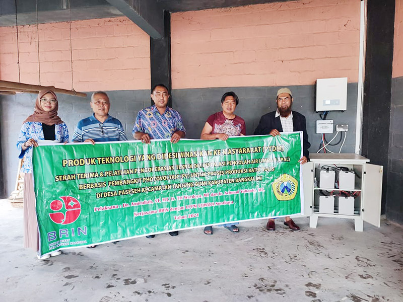 JATIMPOS.CO//BANGKALAN- Universitas Bhayangkara Surabaya memberikan bantuan instalasi pengolahan air limbah bertenaga surya kepada pengrajin batik tulis di Desa Paseseh Tanjung Bumi Bangkalan Madura.