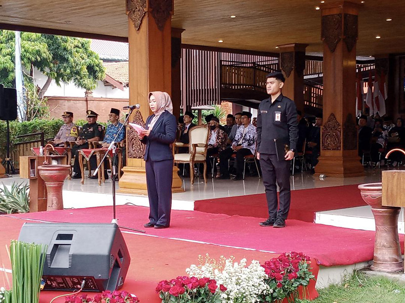 JATIMPOS.CO/KABUPATEN MADIUN - Sebanyak 500 peserta dari siswa SD dan SMP se-Kabupaten Madiun melakukan wisuda pendidikan karakter berbasis agama Islam di Pendopo Ronggo Djoemeno, Puspem Caruban, Kamis (30/11/2023).