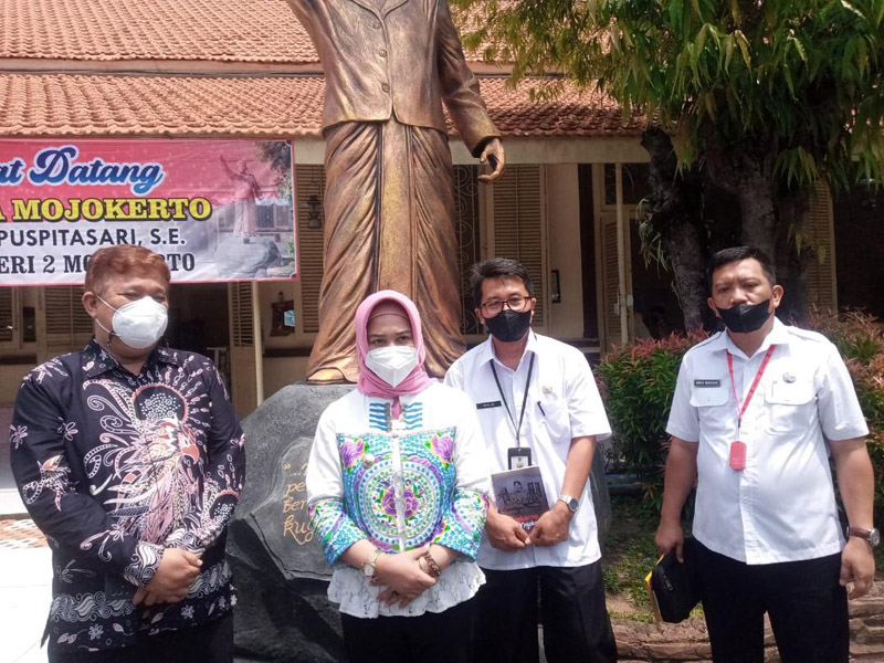 JATIMPOS. CO/KOTA MOJOKERTO - Tingkatkan minat baca bagi siswa SMPN, Wali Kota Mojokerto Ika Puspitasari, SE, meresmikan E-Library (perpustakaan elektronik) di salah satu ruangan milik SMPN 2 Kota Mojokerto, Rabu (30/3/2022).