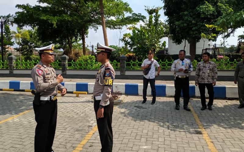 Kasat Lantas Polres Madiun, AKP Jimmy Heryanto H. Manurung, S.H., S.I.K. (kiri) melaporkan situasi kawasan KTL kepada Kompol Dwi Sumrahadi Rahmanto., S.I.K, M.H. (kanan) dari Ditlantas Polda Jatim