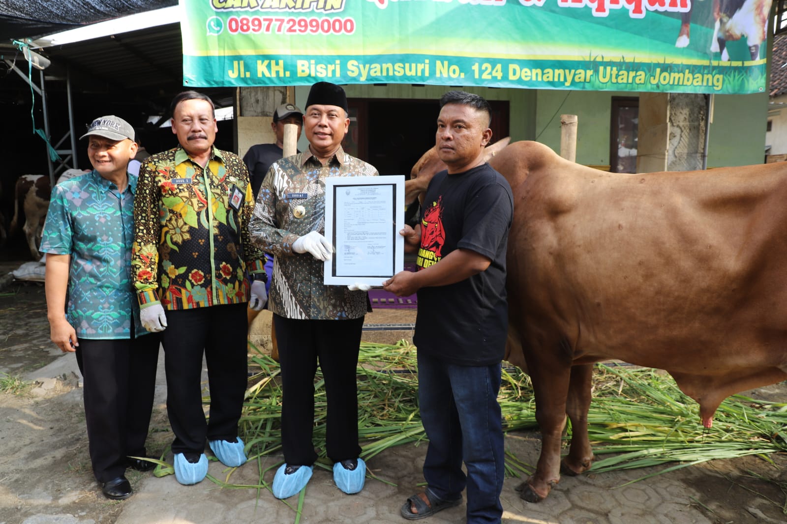 Didampingi oleh Kepala Dinas Peternakan Kabupaten Jombang Agus Susilo Sugioto, Pj Bupati Jombang turun langsung ikut mengecek dan memastikan hewan kurban di kota santri layak dan sehat untuk masyarakat.