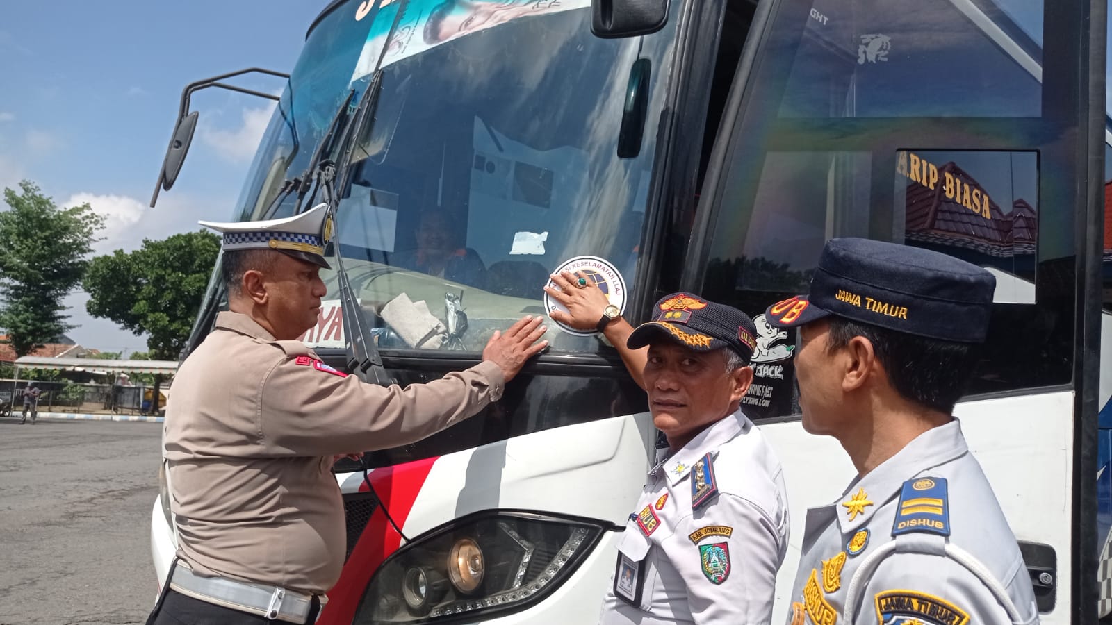 Satlantas bersama petugas dari Dishub Jombang memeriksa tidak hanya kelayakan kendaraan, tetapi juga kelengkapan surat-surat pengemudi. Selain itu, para sopir dan awak bus diimbau menjaga kebugaran selama bertugas.
