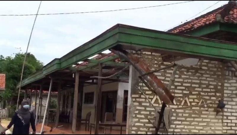 "Tiba-tiba atap rumah bagian belakang dan teras depan terangkat dan jatuh hingga hancur, langsung saja saya keluar rumah takut tertimpa," kata dia.
