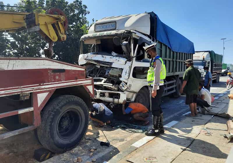 JATIMPOS.CO/GRESIK – Diduga rem blong, kecelakaan beruntun melibatkan 3 kendaraan truk terjadi terjadi di Raya Sembayat Kecamatan Manyar Kabupaten Gresik, Kamis (22/4/2021) pagi.