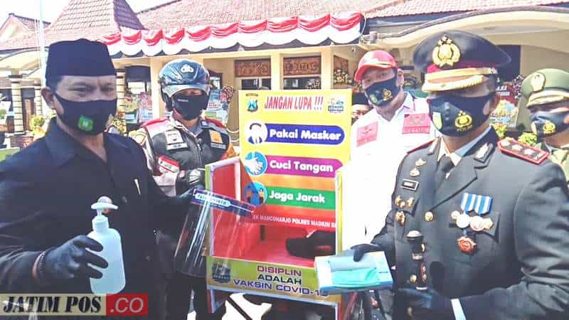 JATIMPOS.CO/KOTA MADIUN - Di momen peringatan Hari Ulang Tahun (HUT) Bhayangkara ke - 74 Tahun 2020, Polres Madiun Kota melaunching Motor Tangguh Semeru Covid-19 di Halaman Polres Madiun Kota, Rabu (1/7/2020).