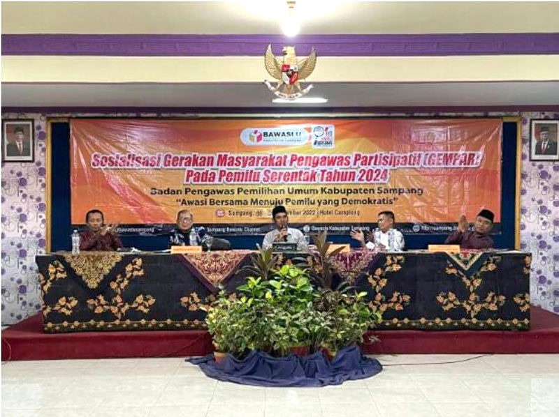 JATIMPOS.CO//SAMPANG- Badan Pengawas Pemilu (Bawaslu) Bawaslu Kabupaten Sampang menggelar Sosialisasi Gerakan Masyarakat Pengawas Partisipatif (GEMPAR) Pada Pemilu Serentak Tahun 2024 dengan tema: "Awasi Bersama Menuju Pemilu Yang Demokratis", Kamis, (08/12/2022).
