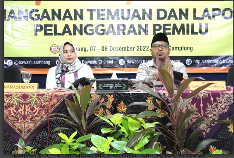 JATIMPOS.CO//SAMPANG- Badan Pengawas Pemilu (Bawaslu) Kabupaten Sampang mengadakan kegiatan Rapat Kerja Teknis Penanganan Temuan dan Laporan Pelanggaran Pemilu. Kegiatan itu dilaksanakan di Hotel Wisata Camplong. Kamis (07/12/2022).