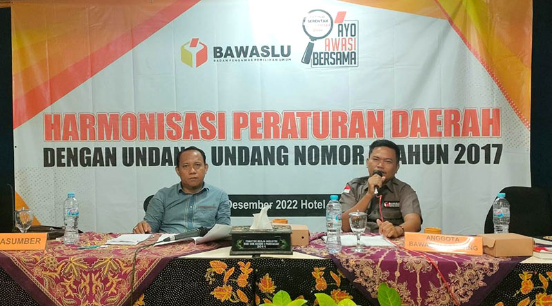 JATIMPOS.CO//SAMPANG- Bawaslu Sampang menggelar sosialisasi harmonisasi peraturan daerah dengan Undang-Undang nomor 7 tahun 2017, Senin (12/12/2022). Kegiatan itu bertujuan untuk menjaga netralitas aparatur sipil negara (ASN) dalam Pemilu 2024.