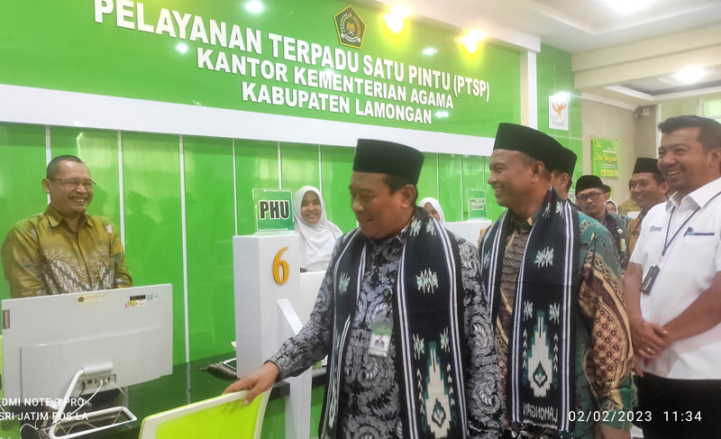JATIMPOS.CO/KABUPATEN MOJOKERTO - Bupati Mojokerto Ikfina Fahmawati didampingi Kepala Bapenda Kabupaten Mojokerto Mardiasih menyerahkan secara langsung Surat Pemberitahuan Pajak Terhutang (SPPT) Pajak Bumi dan Bangunan Perdesaan dan Perkotaan (PBB P2) Kecamatan Pungging tahun 2023, di jalan raya Desa Lebaksono, Kecamatan Pungging, Kamis (9/2/2023) pagi.