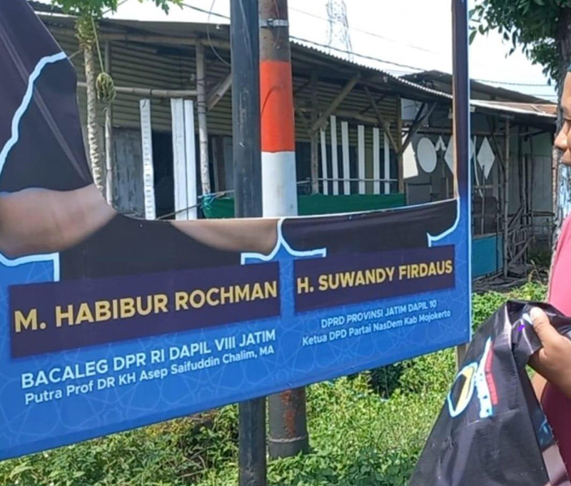 JATIMPOS.CO/KABUPATEN MOJOKERTO – Sejumlah spanduk yang dipasang oleh Muhammad Habiburrahman atau yang akrab disapa Gus Habib, bakal calon legislatif (bacaleg) dari Partai Nasdem untuk DPR RI, mengalami aksi vandalism oleh oknum tak dikenal. Kejadian tersebut terjadi di berbagai lokasi di Kabupaten Mojokerto.