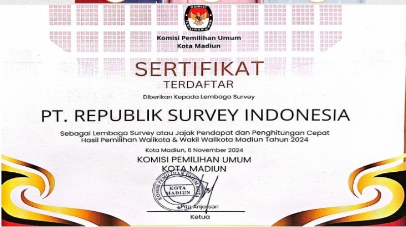 JATIMPOS.CO/KOTA MADIUN - Untuk mengukur seberapa besar tingkat popularitas dan elektabilitas dari masing-masing pasangan calon (paslon) Wali Kota dan Wakil Wali Kota Madiun pada Pilkada 2024, Lembaga Riset The Republic Institute kembali melakukan penelitian perilaku memilih (voting behaviour).
