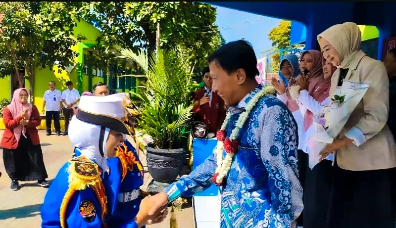 Kedatangan Drs. H. Guntur Sasono, M.Si bersama sang istri, Dra. Hj. Retno Guntur, M.M., disambut meriah oleh siswa-siswi SMKN 2 Madiun melalui penampilan PBB Kreasi.