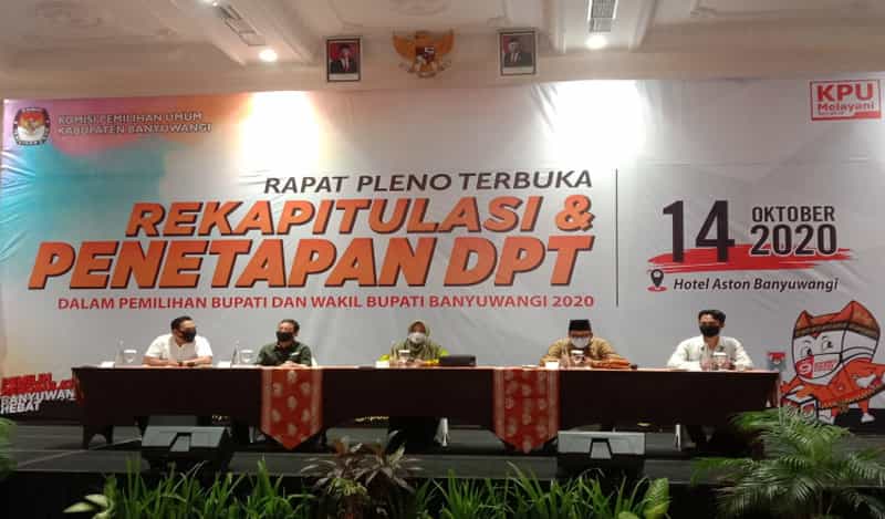 Hal itu diputuskan usai penyelenggaraan Rapat Pleno Terbuka Rekapitulasi Daftar Pemilih Sementara Hasil Perbaikan (DPSHP) dan penetapan DPT di Aula Hotel Aston Banyuwangi, Rabu (14/10/2020).