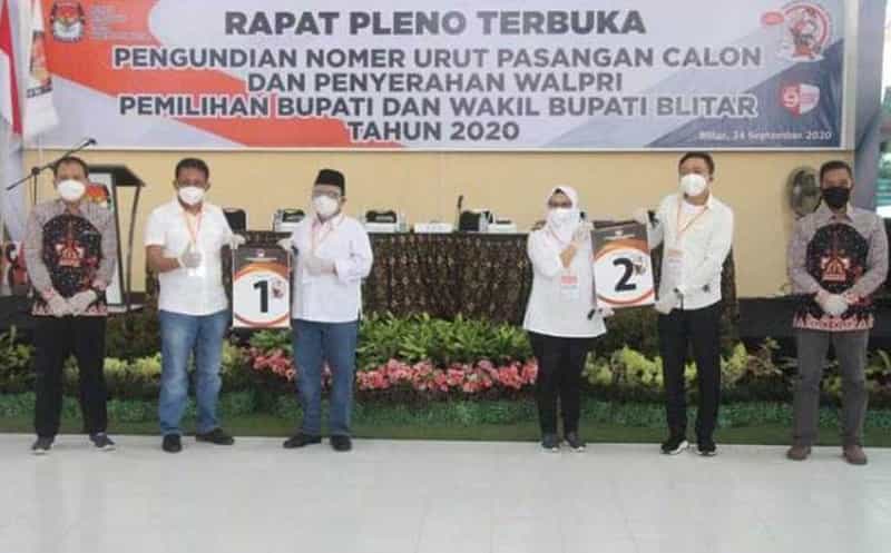 JATIMPOS.CO/KOTA BLITAR - Pengundian nomor urut pasangan calon (Paslon) Wali Kota dan Wakil Wali Kota Blitar di Pilwali 2020 telah dilakukan di sebuah hotel Kota Blitar, Kamis (24/9/2020) sore.
