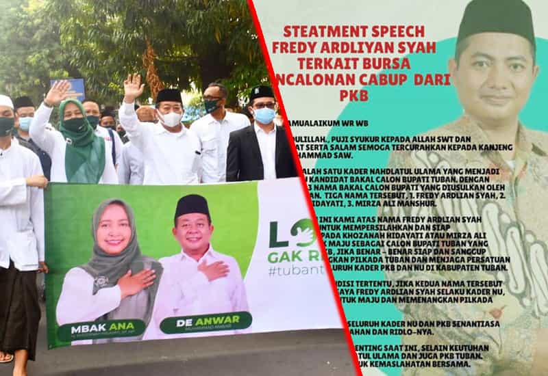 JATIMPOS.CO/TUBAN – Dalam pekan awal September ini warganet di Kabupaten Tuban dibuat penasaran dengan statement Fredy Ardlian Syah tentang cabup-cawabup Tuban yang diusung PKB. Karena sebelumnya di pekan terakhir Agustus juga ada pernyataan yang ditulisnya perihal bursa bakal calon bupati Tuban dari partai berlambang bola bumi dikelilingi sembilan bintang ini. Apakah kedua pernyataannya ini ikhlas yang lahir dari ketulusan suara hati, ataukah memang ada pesan yang tersirat?.